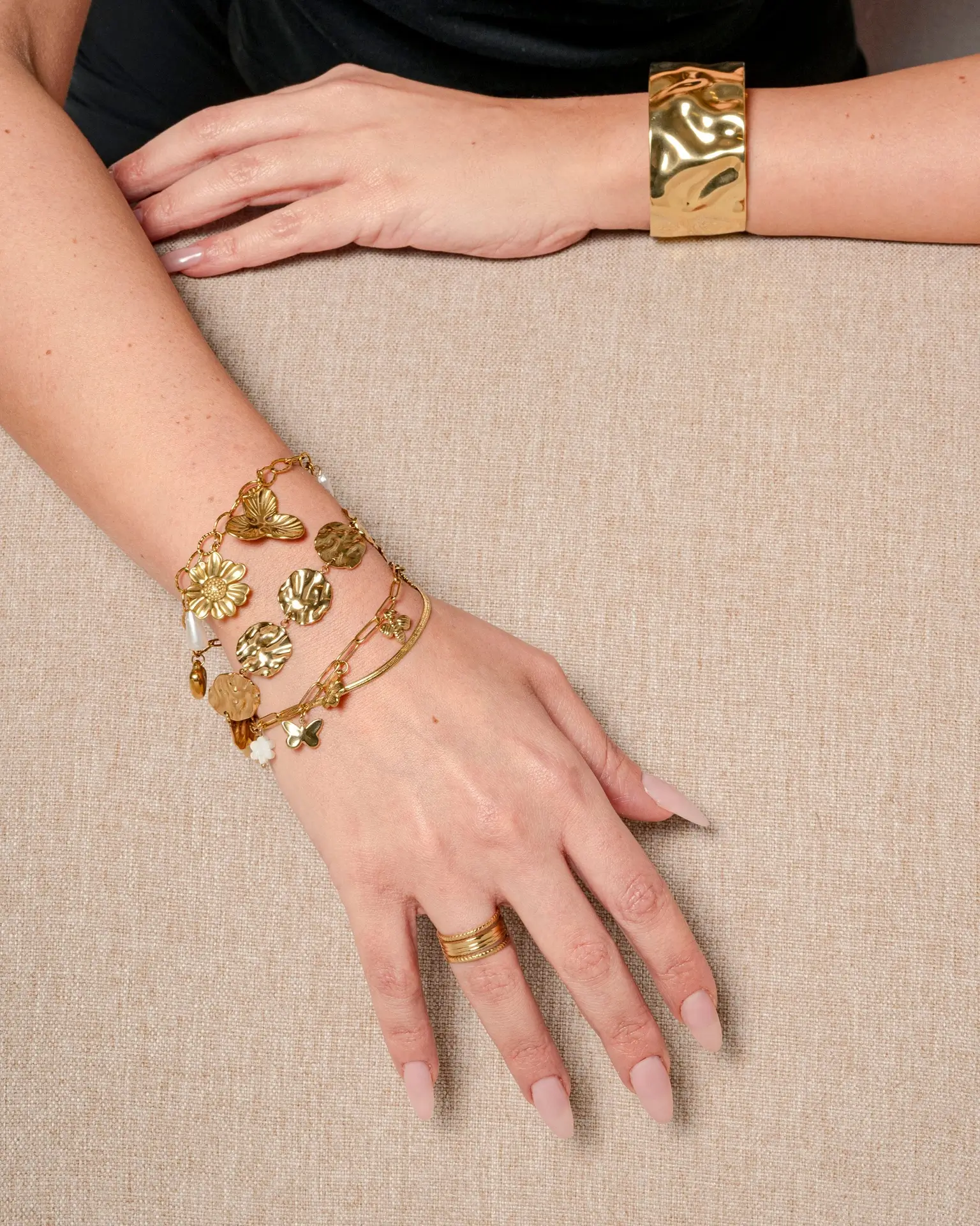 Découvre notre collection de bracelets en acier inoxydable, en doré ou argenté. Durables, résistants à l’eau et confortables, ils se portent au quotidien. Joncs fins, manchettes ou bracelets à charms : des pièces polyvalentes à porter seules ou en accumulation pour composer ton propre langage lumineux.