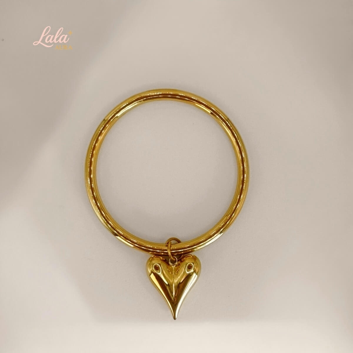 Jonc en acier inoxydable orné d’un pendentif cœur finement texturé, une pièce douce et intemporelle qui apporte une touche romantique sans en faire trop ; il résiste à l’eau, ne noircit pas et s’associe parfaitement aux joncs Nude ou aux Joncs Aura pour un stacking harmonieux et facile à porter.