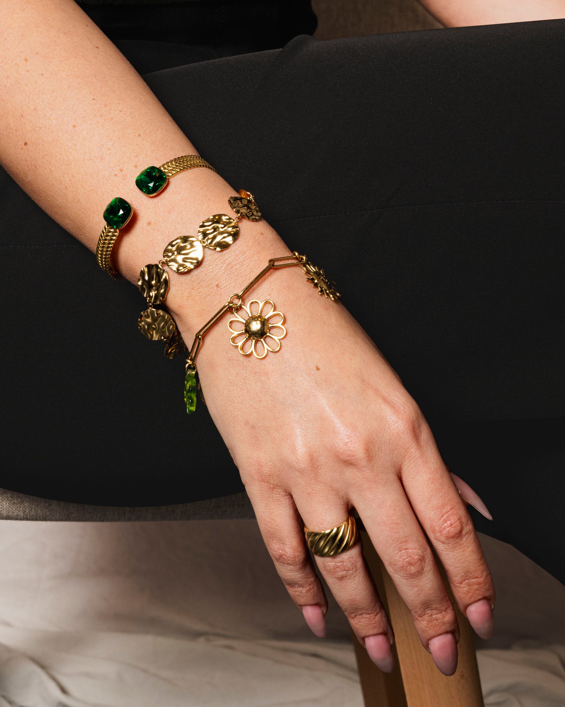 Chaque cristal illumine le jonc d’un éclat différent : discret, doux ou vibrant selon la couleur que tu choisis.