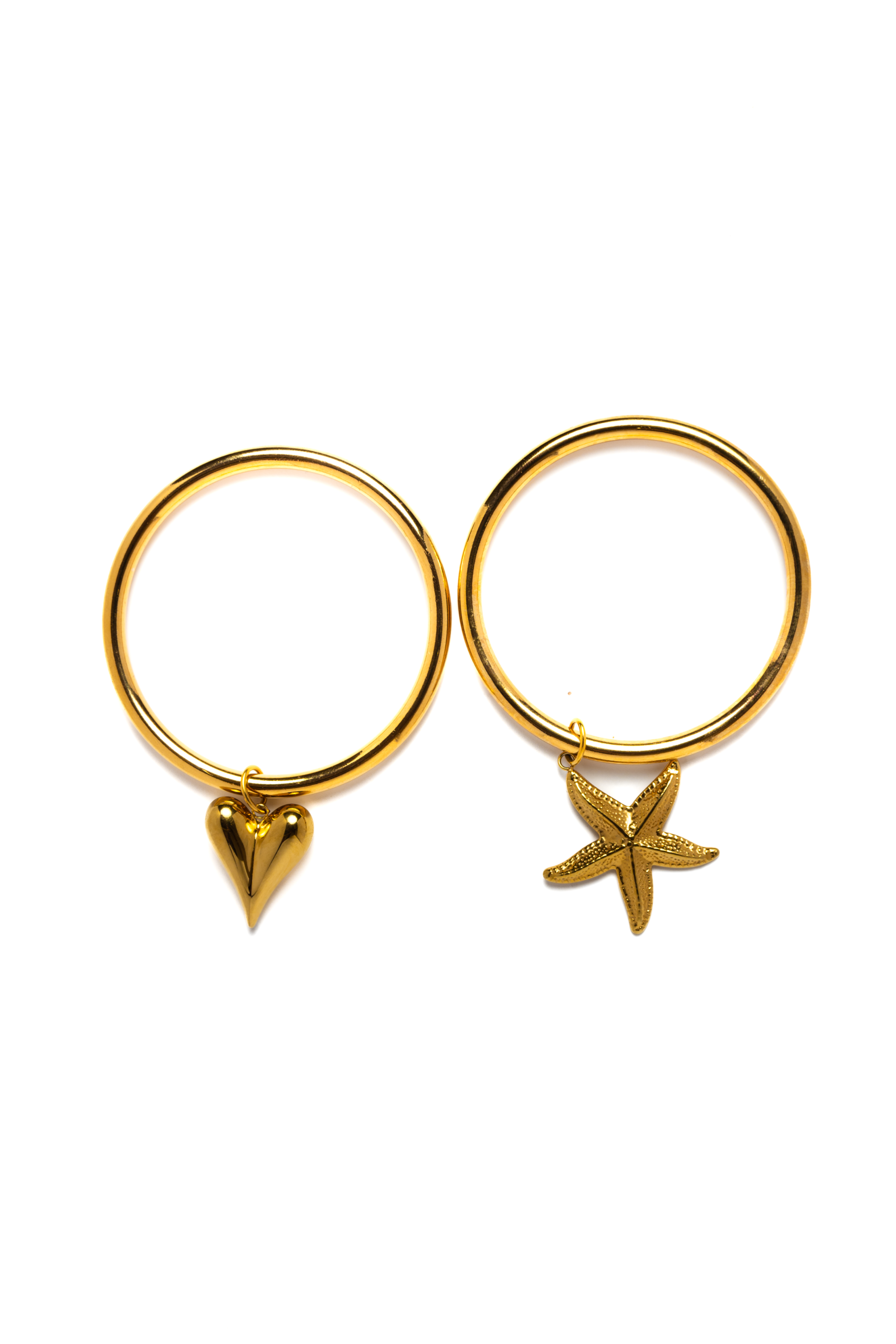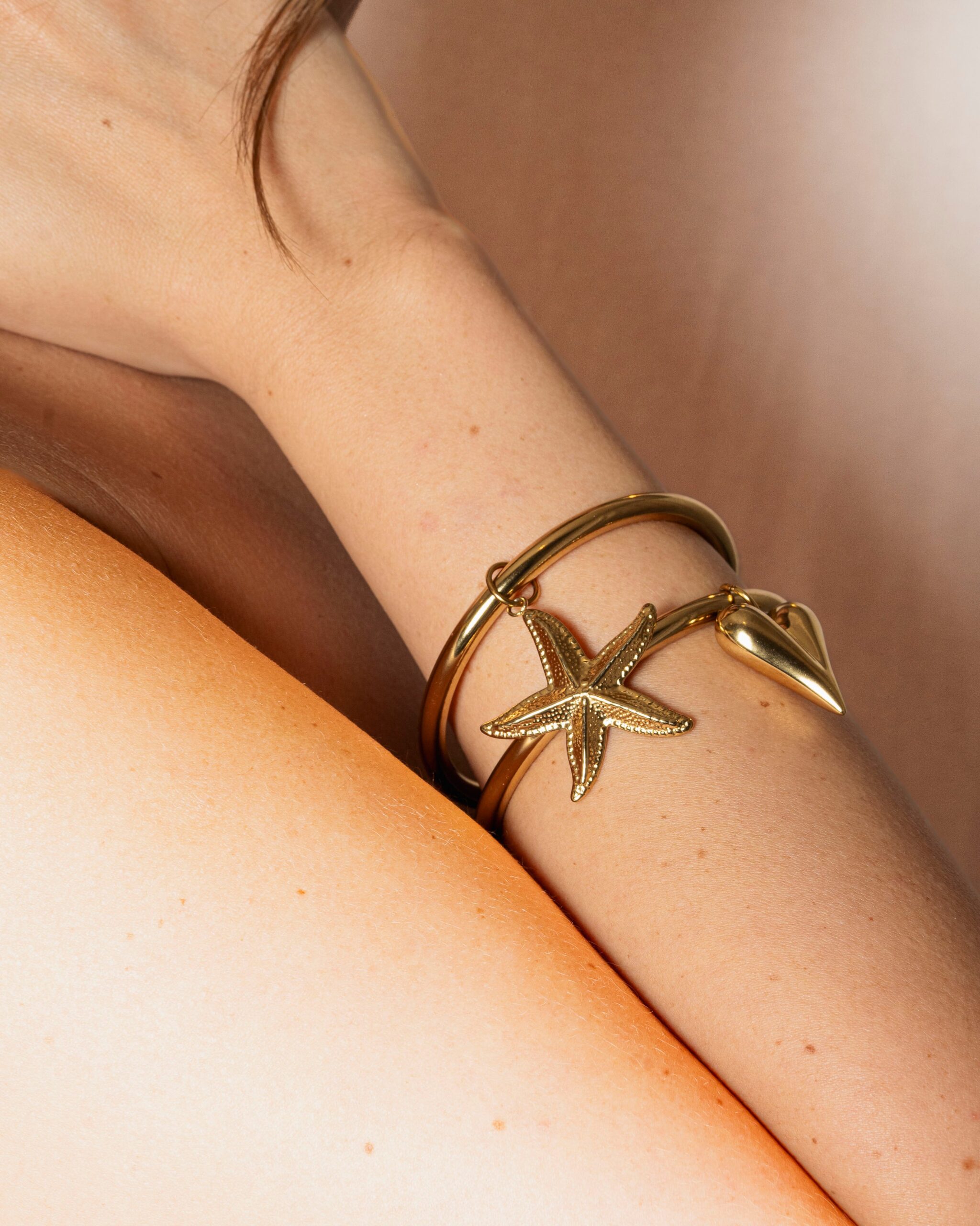Jonc en acier inoxydable orné d’un pendentif étoile de mer texturé, une pièce délicate qui apporte une touche ensoleillée à ton poignet ; il résiste à l’eau, ne noircit pas et se marie très bien avec les autres joncs Nude ou les Joncs Aura pour un stacking élégant et facile à porter.